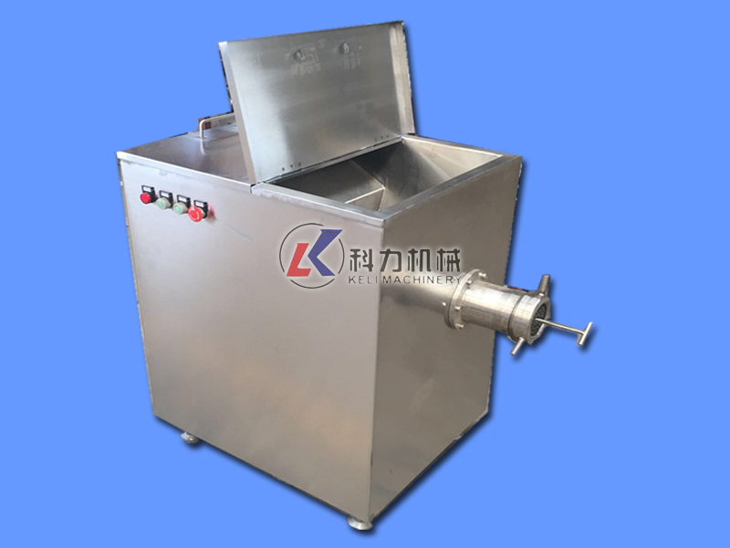 凍肉絞肉機(jī)是肉制品生產(chǎn)行業(yè)中通用性高、使用范圍廣的一種肉食加工設(shè)備。它是依靠螺桿將料斗箱中的原料肉推到預(yù)切板處,通過(guò)螺桿的旋轉(zhuǎn)擠壓使孔板與絞刀產(chǎn)生相對(duì)質(zhì)運(yùn)轉(zhuǎn),從而將原料肉切成顆粒形狀,確保了肉餡的均勻性。通過(guò)孔板的不同組合可達(dá)到理想的要求的不同肉餡。