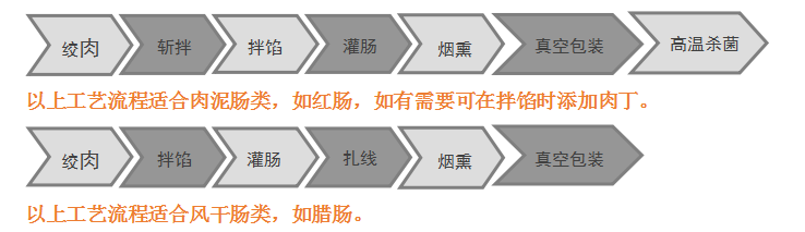 以下為我公司生產(chǎn)的灌腸生產(chǎn)設(shè),可根據(jù)實際生產(chǎn)工藝添加凍肉切丁機、真空滾揉機、小料車、扎線機、打漿機等。