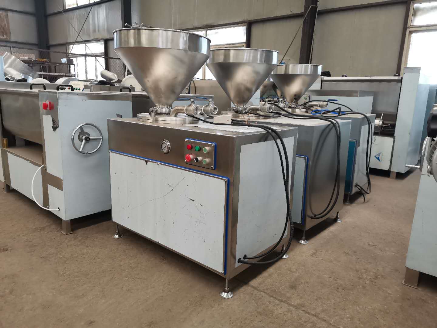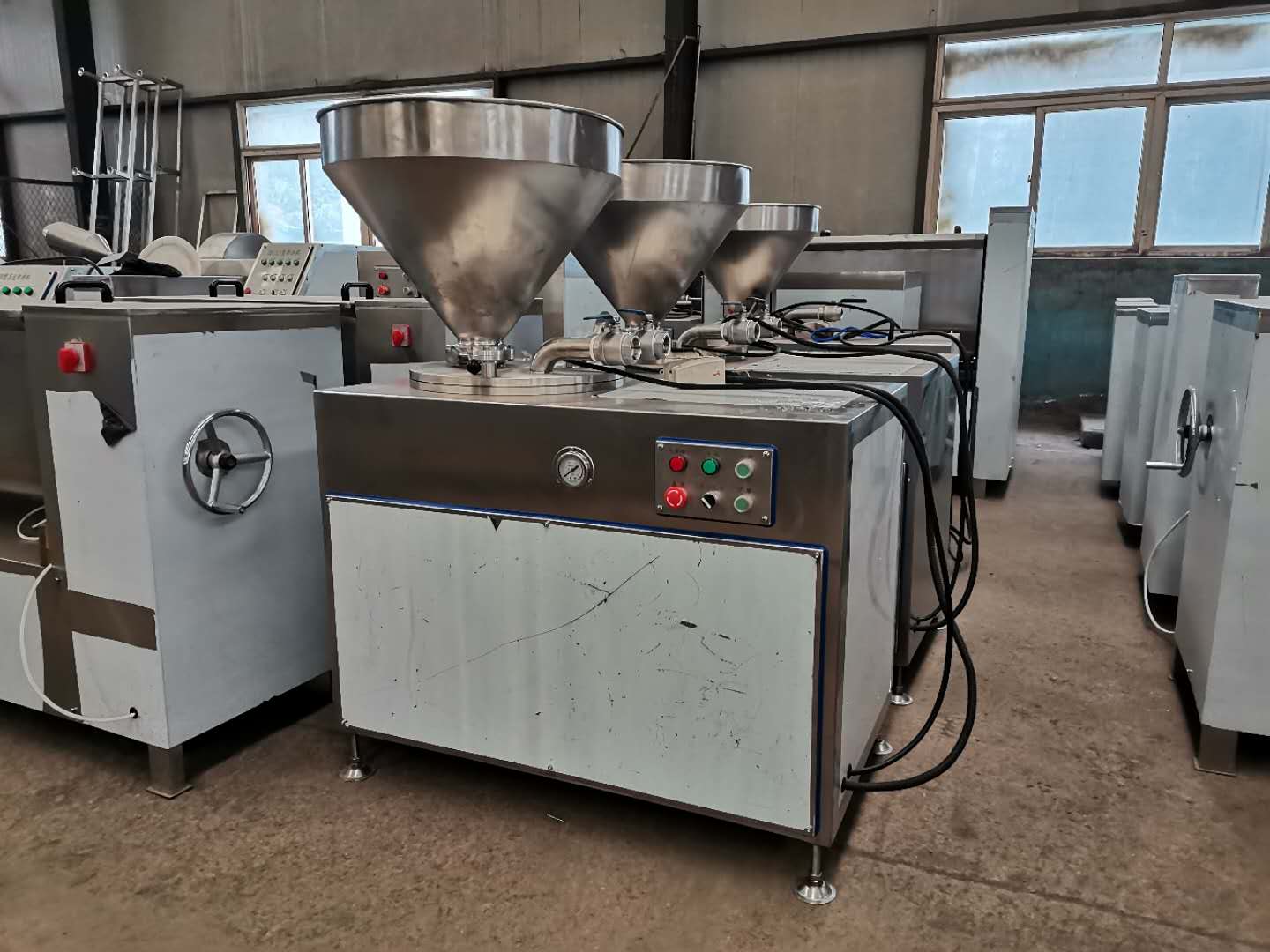 液壓灌腸機是加工腸類制品的設(shè)備。能灌制大、中、小各種規(guī)格的腸制品。該產(chǎn)品外形美觀、做工精良、操作方便、使用安全可靠。該機的料斗、閥門、灌腸管及整機外包裝均采用不銹鋼制造。符合食品衛(wèi)生要求。